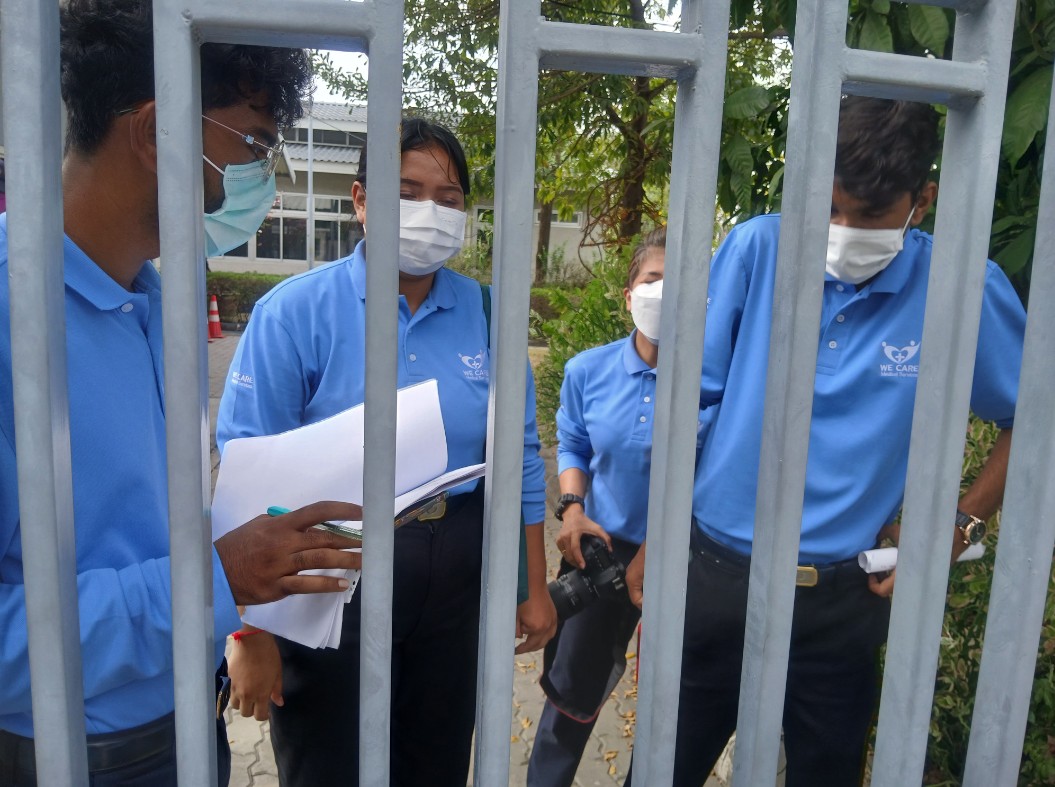 这是出来的四个慈济工作人员,其中一个给拍照,这是他们在门里边,我们在门外边。