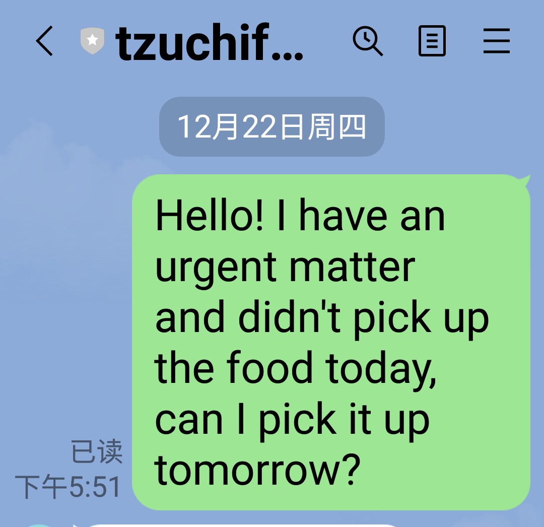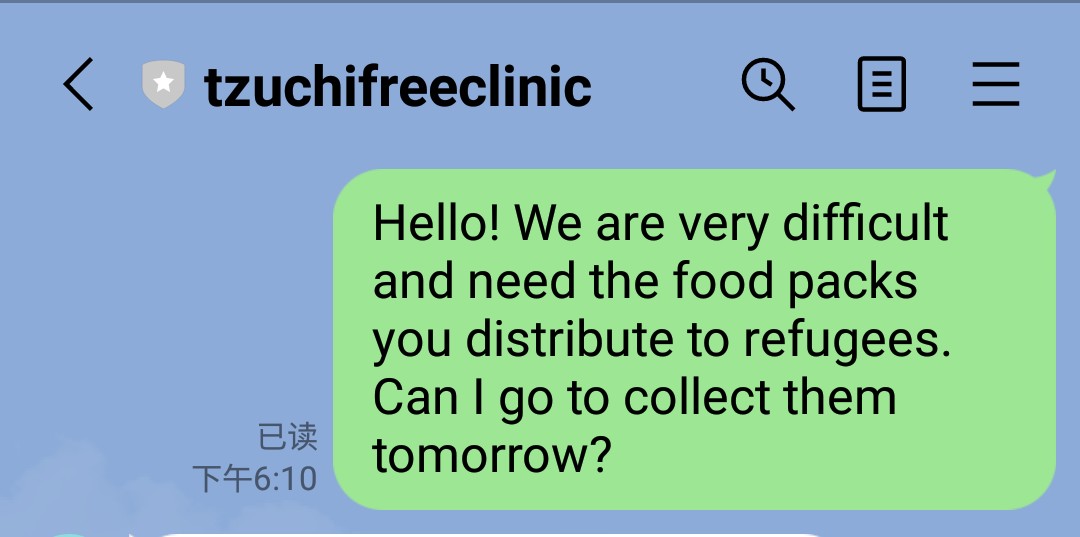 但是在LINE里接收到慈济发来的信息,由于张淑凤2022年12月21、22号都在填表所以在给慈济的LINE里留言,我有急事,明天去领食物包,在LINE里发了留言(有图片),而且慈济的工作人员也已读了,慈济的工作人员也没有回复23号不可以去慈济呀,所以2022年12月23号下午张淑凤母女一起去慈济领3千泰铢和食物包,慈济的工作人员王珍丽态度特别恶劣,不给我们母女3千泰铢和食物包,还指使保安殴打我们母女、指使保安抢我们的手机,把我拍到的王珍丽谩骂侮辱我们母女的视频删除,还要找泰国警察把我们母女抓起来,慈济的工作人员王珍丽谩骂侮辱我们:“你们臭难民,就不给你,看你们有什么新鲜的”,在张淑凤的一再要求下“见慈济的领导”,后来来了一位自称是慈济的领导这个女的说:“你只要能够证明你这两天在填表,我就可以给你钱和食物包,”张淑凤母女也是秉承着解决问题,就如实告知说明情况,给她看了填写的表格,这个女的自称是领导的仔细看了我们母女的填写的表格,这个女的自称是领导的又说:“不给她们3千泰铢和食物包,并说自己不是领导”,张淑凤说:“你们发3千泰铢和食物包是救助难民的,我们是联合国难民署的难民,你们这么不讲道理,出尔反尔,”把我气得直哭,你们太不讲道理,这个女的自称是领导的在欺骗我们母女,在拖延时间,找泰国警察要把我们母女抓起来,警察来了之后,慈济的工作人员林纯铃还跑过来要殴打张淑凤母女、还言语辱骂我们母女,被警察拦住,张淑凤与警察说明情况后,泰国警察非常同情我们母女。(有图片)后来5点,慈济的工作人员下班了,张淑凤母女就走了回家,准备第二天2022年12月24号我们母女再来慈济,要克扣难民我们母女的食物包和三千泰铢。