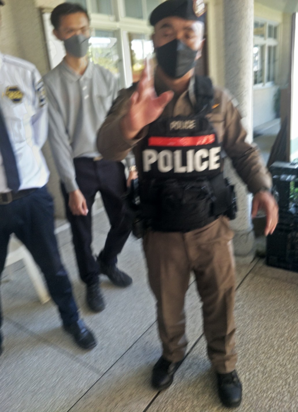 这张图片是慈济的工作人员把泰国警察找来,一共三个泰国警察